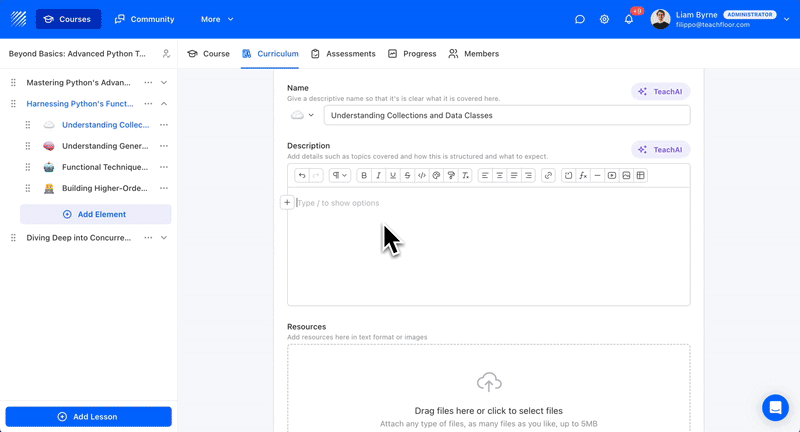 Create full courses in minutes with the new AI Course Generator. Just describe your topic, audience, and structure—Teachfloor does the rest.