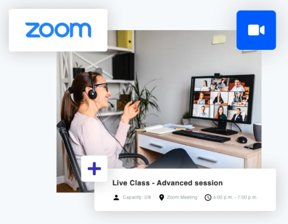 You can host live events by connecting your Zoom account to the platform. Video recording and transcription will be available right after your live session perfect for those who missed it.