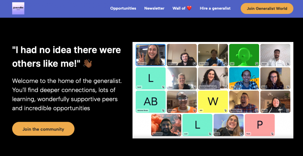 The Generalist World is a great example of what I’m talking about. Generalists may feel like outcasts in the outside world due to the nature of their skills—but not in this community. GW welcomes every generalist worker, talks about the challenges in their working environment, and builds up a support network.