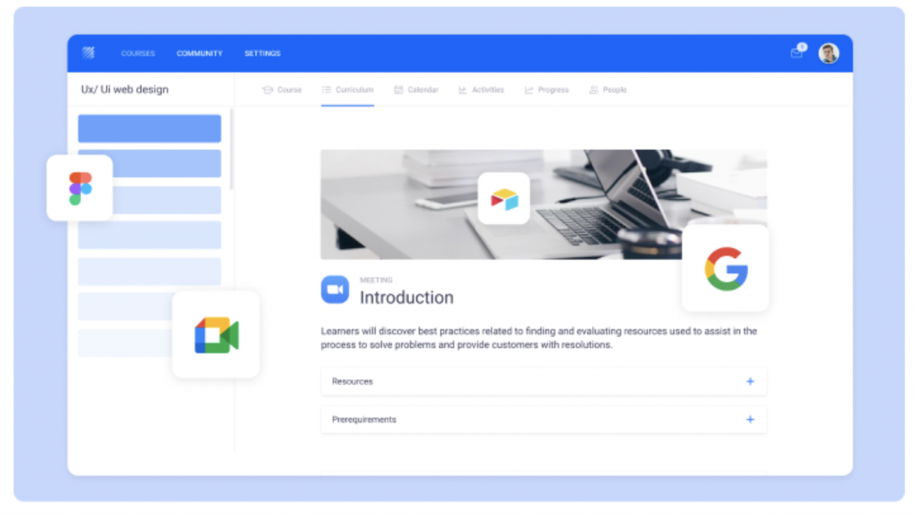 Teachfloor is a no-code learning platform that allows any course creator or corporate trainer to add elements and courses in the simplest way possible. A curriculum builder is a pre-built software with a drag-and-drop feature, so you don't need months or even years to build your online course. You just need a few hours to launch it.