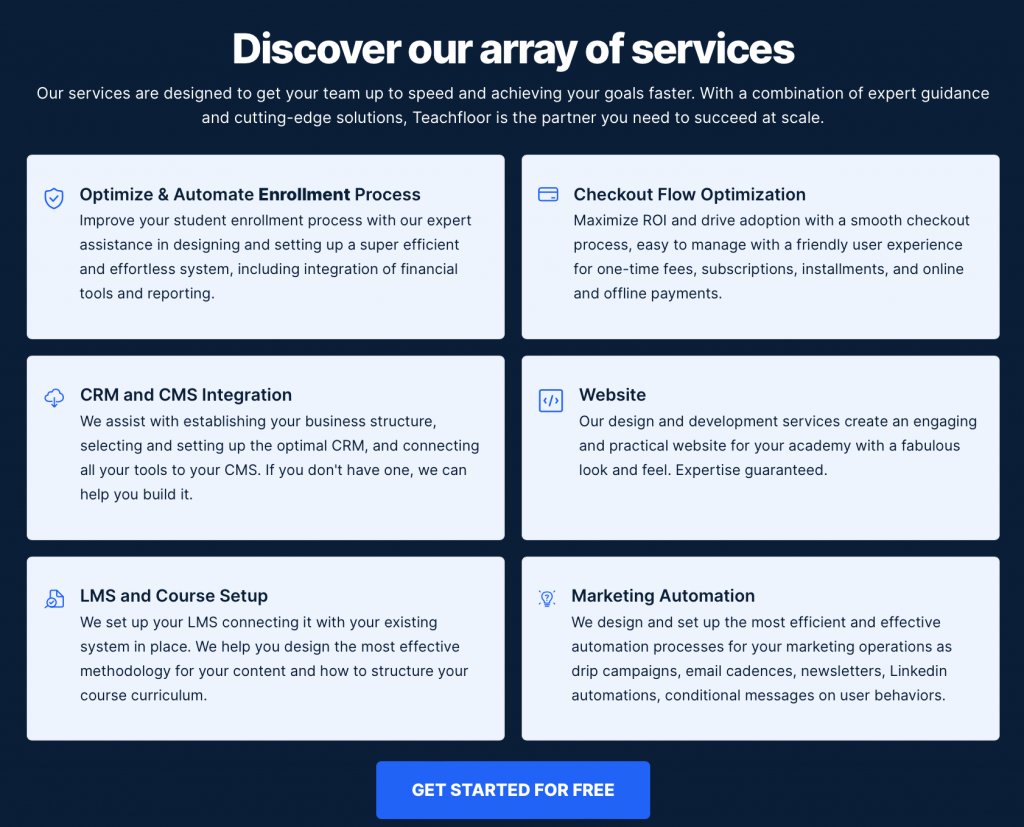 Lastly, Teachfloor has just released additional services for first-time course creators and edupreneurs who are building their online businesses. You can either work by yourself or with Teachfloor’s dedicated team to build your online academy.
