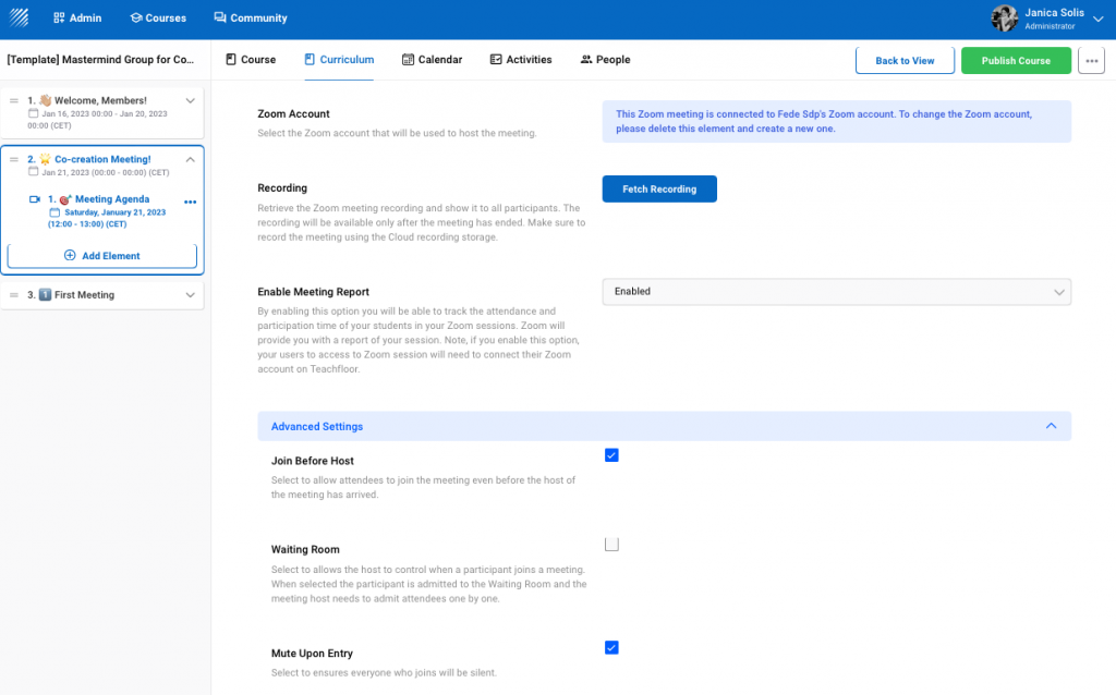 Another advantageous feature we have on Teachfloor is the “enable meeting report”. It helps you track the attendance and participation time of your students. Reports are made available in Zoom. However, to enable this completely, kindly connect your members’ Zoom accounts on Teachfloor so they may be able to access Zoom.